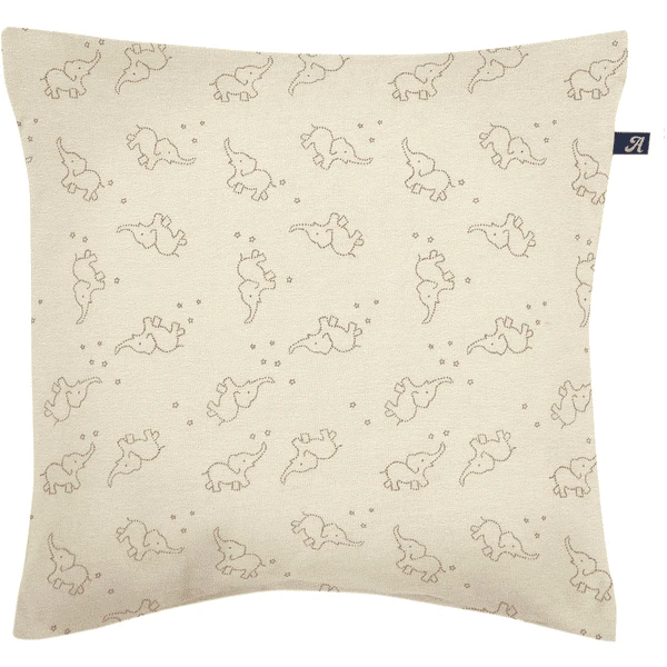 confeccionado en algodón orgánico. Un lado está impreso con elefantes y el reverso con pequeños asteriscos.