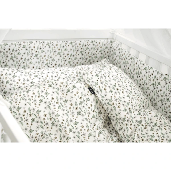 Alvi ® Juego de cama de 4 piezas Petit Fleurs verde/blanco 100 x 135 cm