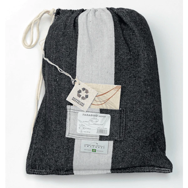 Hamaca Paradiso con bolsa de tela reutilizable de colores coordinados.