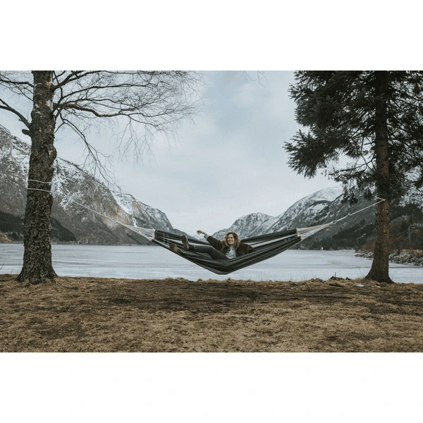 - El tejido denso de 400 g/m2 con una capacidad máxima de carga de 200 kg garantiza la durabilidad de la hamaca