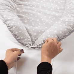 El nido del bebé también tiene una cremallera para quitar fácilmente la superficie acolchada y luego se puede lavar hasta 40 °C. Una funda abotonable para la superficie de descanso hecha de algodón 100% orgánico está disponible por separado y ofrece protección higiénica. El tamaño del nido de caricias babybay ® puede ser ajustado como se desee con las correas integradas.