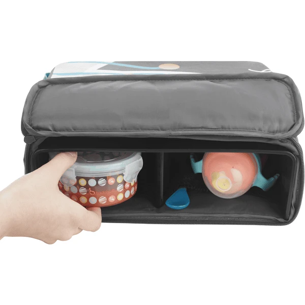 Yummy Travel llega justo a tiempo. Este asiento de seguridad para niños móvil se adapta fácilmente a cualquier silla, sin importar dónde se encuentren usted y su hijo. Con dos correas para el asiento y una correa para el respaldo, el asiento booster para niños pequeños puede fijarse fácil y rápidamente a cualquier silla. Tu pequeño bravucón se sienta 10 cm más alto y es sujetado con seguridad por un sistema de cinturón de 3 puntos. Yummy Travel es ideal para cualquier viaje porque hay un gran compartimiento de almacenamiento debajo del asiento. Allí podrás alojar una comida, pequeños aperitivos y todo lo que tu hijo necesite para viajar.