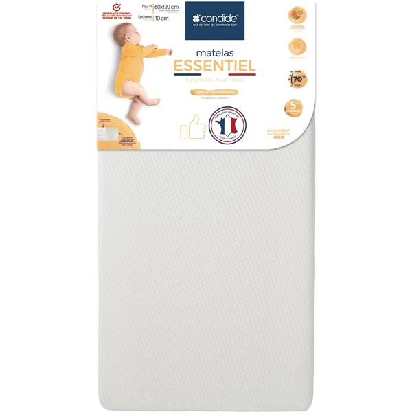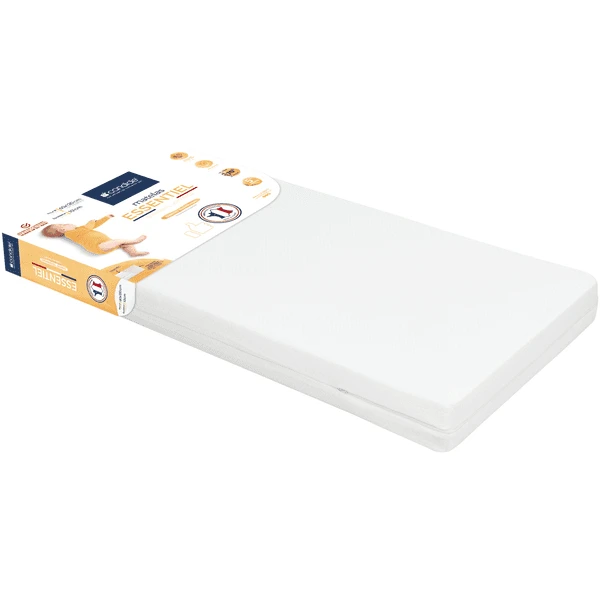 El colchón esencial de espuma de poliuretano con antiácaros y funda antibacteriana. La funda es extraíble y lavable a 30°C.