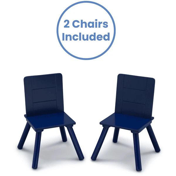 consta de una robusta mesa con almacenaje en el centro y dos sillas a juego.