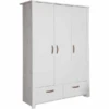 El armario tiene tres puertas y dos cajones aden , todos ellos equipados con el cómodo sistema de cierre suave. Esto permite un cierre casi silencioso y evita eficazmente que los dedos queden atrapados.El interior del armario de la habitación de los niños se divide de la siguiente manera: Detrás de las puertas dobles hay un estante ajustable y una amplia barra de ropa. El mueble individual está equipado con una barra de confección estrecha y una estantería empotrada. Los tiradores de las puertas y los cajones aden pueden personalizarse con inserciones de tiradores en diferentes colores. Sólo tiene que seleccionar la incrustación deseada e insertarla en el asa en blanco.