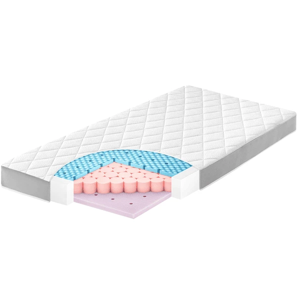 Los colchones Dr. Lübbe fueron desarrollados en estrecha colaboración con el pediatra Dr. Carsten Lübbe. Entre las capas superior e inferior suaves se incorpora una capa media más firme. La capa media sólida evita la presión en la capa inferior más suave. El cuerpo del bebé recibe así el apoyo necesario sin que toque directamente con las capas duras. La construcción especial de 3 capas, según el principio elástico del Dr. Lübbe, garantiza un entorno saludable para dormir y el almacenamiento ideal de la columna vertebral del bebé.