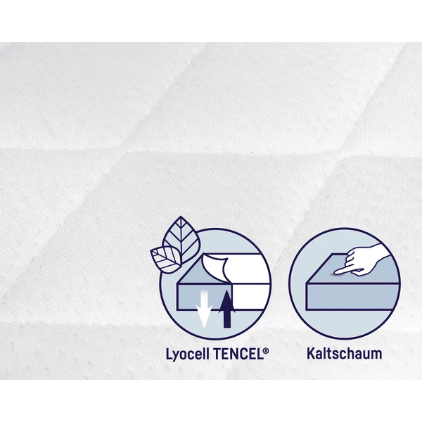 Las materias primas de alta calidad y su gran adaptabilidad convierten la espuma en frío en el material ideal para los colchones infantiles. Además, la espuma en frío es más transpirable que otras espumas. Además, se caracteriza por su alta capacidad de carga, durabilidad y larga vida útil. La espuma fría es ecológica e indicada para personas alérgicas. - Funda funcional Premium TENCEL® Fresh & Dry