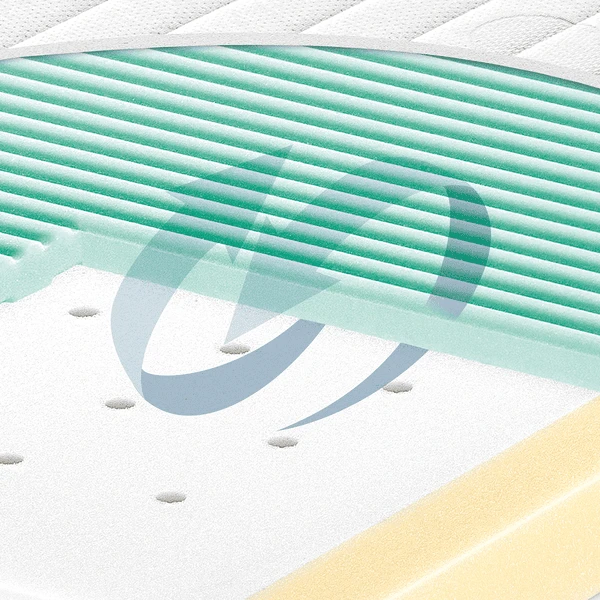 - Ventilación triple: la espuma de marca con corte ondulado en la superficie y los canales de ventilación verticales y horizontales garantizan un clima perfecto para dormir