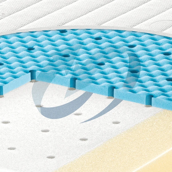 - La espuma fría de poros abiertos con perfil de siesta en la superficie y los canales de ventilación verticales garantizan un clima perfecto para dormir