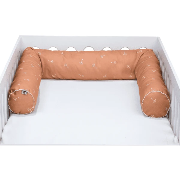 La serpiente nido de Julius Zöllner mide 180 cm de largo y tiene un diámetro de 14 cm. Protege la cabeza del bebé de los barrotes duros de la cuna y de las corrientes de aire. También es un hermoso accesorio para jugar y abrazar.