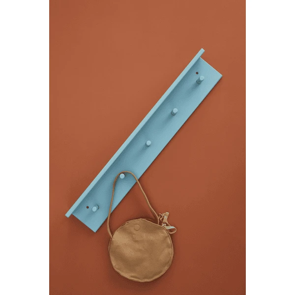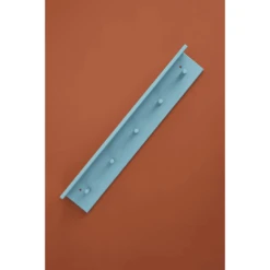 Estantería y tabla de ganchos en uno. Los 5 ganchos están distribuidos uniformemente, por lo que se pueden colocar varios estantes uno al lado del otro. Disponible en 4 colores diferentes.