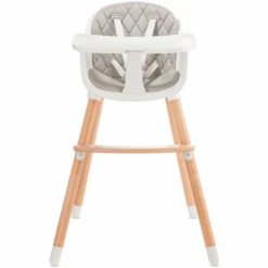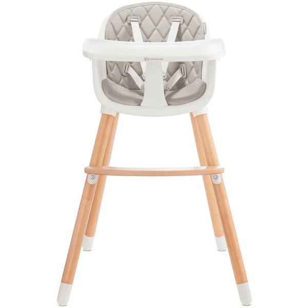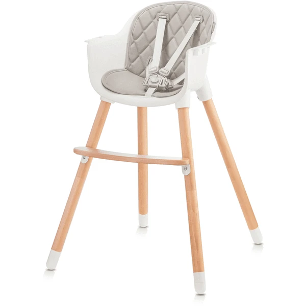 Las patas de la trona son de madera de haya duradera y el asiento es de plástico PP de alta calidad.