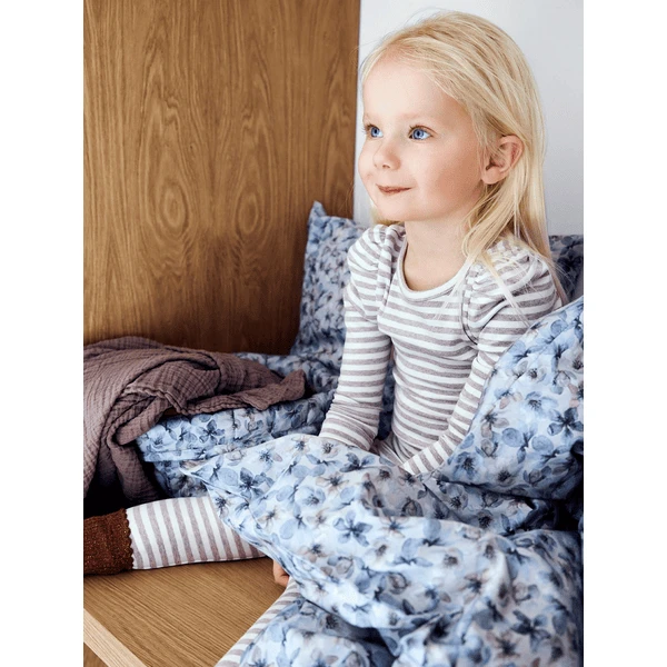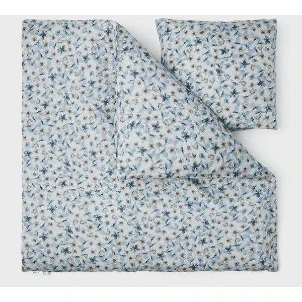 Ropa de cama suave y tierna con un delicado estampado floral hecho de algodón orgánico.