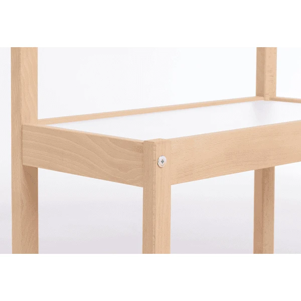 - Banco infantil ‘Olaf’, a juego con el grupo de asientos de 3 piezas ‘Olaf’, hecho en parte de haya maciza y decorado, sin tratar y de color blanco.