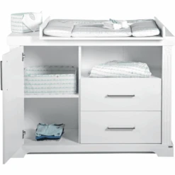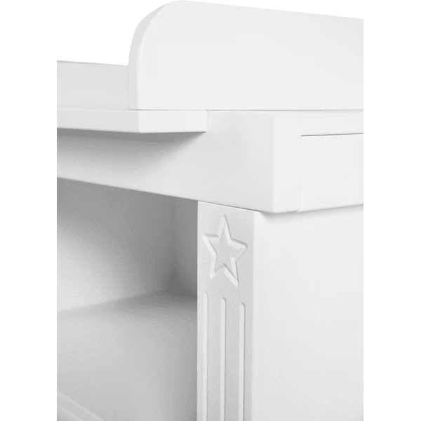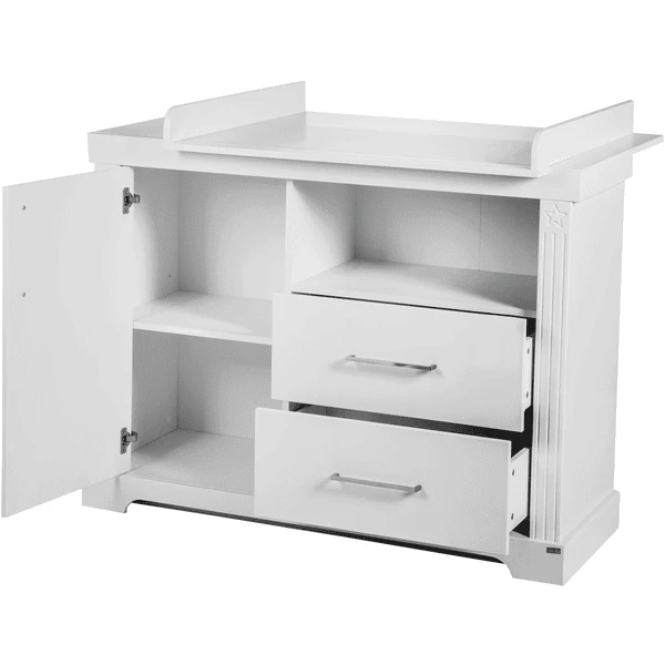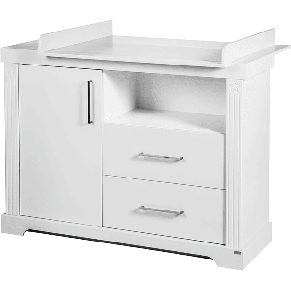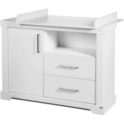 El cambiador roba con tapa cambiadora es un verdadero todoterreno y le servirá durante muchos años. El cambiador estable se puede utilizar como asiento elevado para su hijo de jardín de infancia, para que pueda ayudarle fácilmente a vestirse en una posición cómoda de pie. Más adelante, el mueble cambiador puede utilizarse como cómoda en el salón o en el cuarto de los niños.