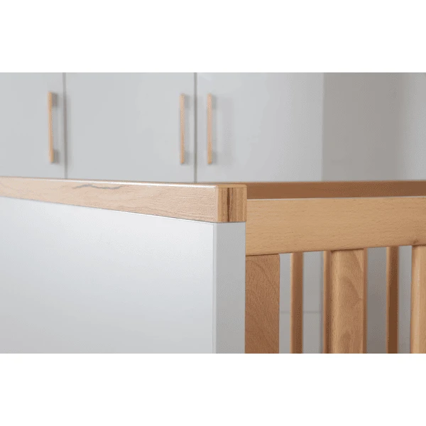 La cama para niños y bebés en crecimiento acompaña a tu bebé desde que nace hasta que empieza el colegio. La posición de tumbado superior de la cuna de altura regulable en 3 posiciones es especialmente cómoda para la espalda de los padres. Puedes levantar fácilmente a tu bebé de la cuna desde esta cómoda altura de descanso. Más adelante, la posición intermedia es la opción perfecta, ya que las 3 barras deslizantes extraíbles del elemento de la cuna permiten a su hijo pequeño entrar y salir con seguridad. La posición más baja de la cuna ajustable en altura está destinada a la cama Junior . Cuando su bebé sea mayor, la cuna combinada puede convertirse en una cama Junior utilizando los laterales de conversión que están disponibles por separado. El cabecero y el piecero de la cuna combinada pueden dividirse. Cuando se convierte en una cama Junior , se utilizan las dos mitades superiores del cabecero y el piecero y se crea un nuevo aspecto en la habitación de los niños. La cuna combinada «Tobi» puede utilizarse hasta que el niño tenga 7 años (o hasta un peso corporal de 50 kg).
