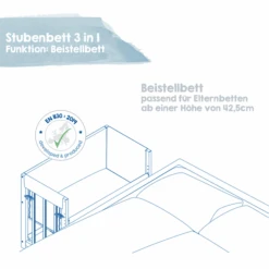 o incluso como un banco para niños. La cama extra puede ser fijada fácilmente y