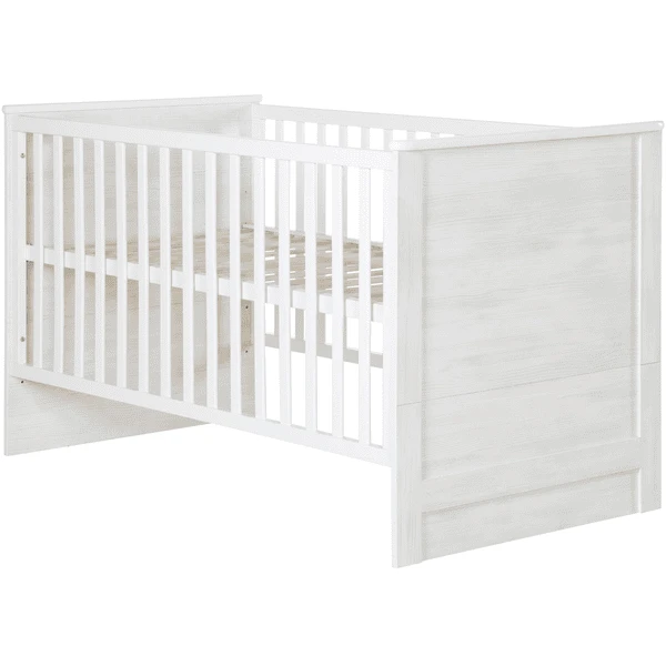 La cuna roba Sarah en la decoración North White Wood Bile + white tiene una superficie de reposo de 70×140 cm y también hace que sea un juego de niños para los pequeños entrar y salir de la cama cuando sea necesario gracias a 3 listones deslizantes extraíbles. Todas las superficies son limpiables y fáciles de limpiar. Opcionalmente, se puede adquirir por separado un somier a juego para insertar debajo de la cuna, así como muchos otros muebles a juego, como un cambiador, un armario y una estantería de pared de la serie Sarah.