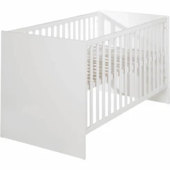 Especialmente cómoda para levantar a su bebé de la cama es la posición superior de la cuna de triple altura ajustable. Los 3 peldaños desmontables permiten a su hijo entrar y salir con seguridad. La roba cuna combi «Maren» fue desarrollada en Alemania y cumple con las normas de seguridad actuales según EN 716.