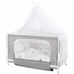 Las cunas Roba Room ofrecen a los padres y a los niños la oportunidad de pasar el mayor tiempo posible juntos durante los primeros meses. Ofrece la posibilidad de ajustarse individualmente a la cama de los padres. Ajustable en altura 6 posiciones de 60 x 120 cm