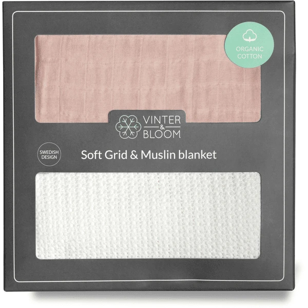 VINTER& BLOOM Manta de regalo Manta de rejilla suave y manta de muselina GOTS B right White / Dusty Rose