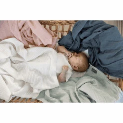 La manta de muselina de algodón orgánico es fresca y suave para la piel sensible del bebé. Gracias a su buen tamaño, la manta de muselina también se puede utilizar como bufanda y le da al bebé la tranquilidad de estar amamantando y alimentándose. Envuelva a su bebé en la manta de muselina cuando sea hora de descansar.